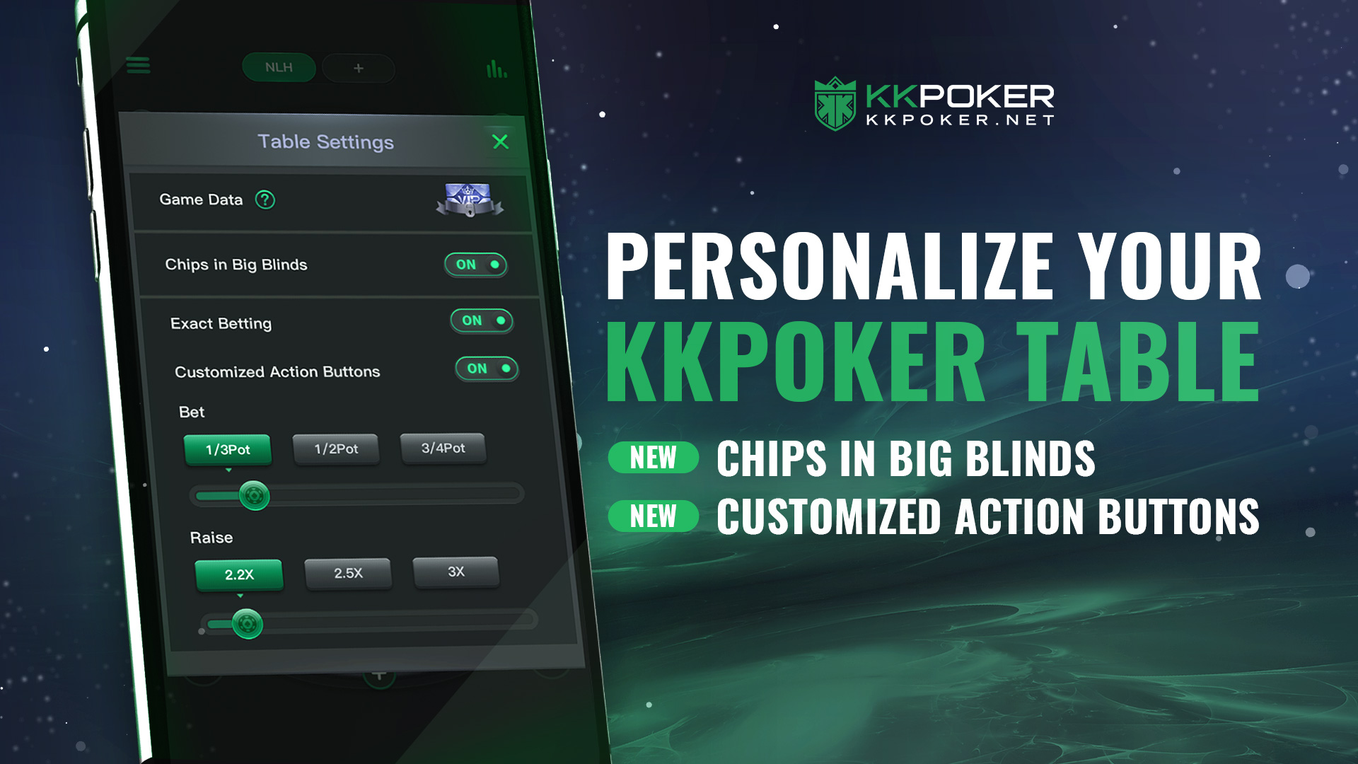 Updated ‘Action Buttons’ will allow you to set customized bet and raise amounts, making it even easier and quicker to use the KKPoker interface.