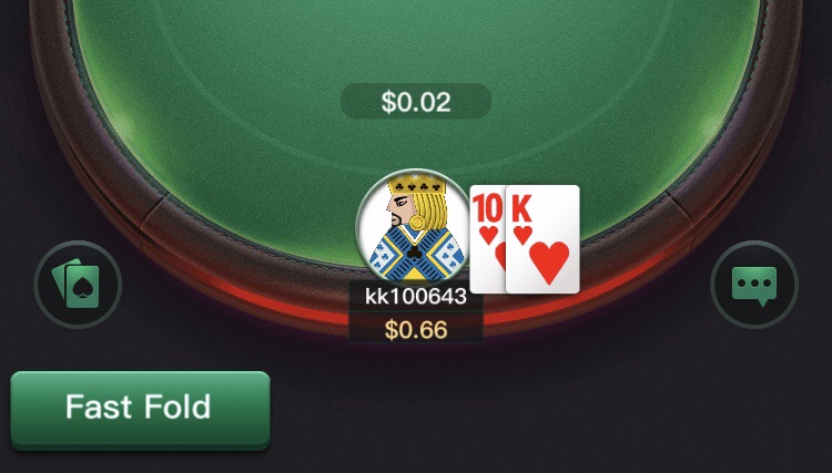 • For players who are already at a table, the ‘FAST FOLD’ button will appear. By clicking the ‘FAST FOLD’ button, the player will discard their current hand and move to a new table to wait for a new hand to start.