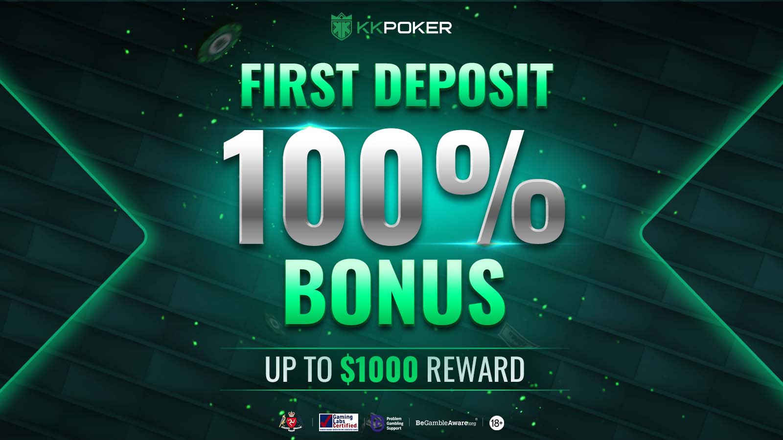 Boost your bankroll with a 100% match bonus! Up to $1000 cash reward!