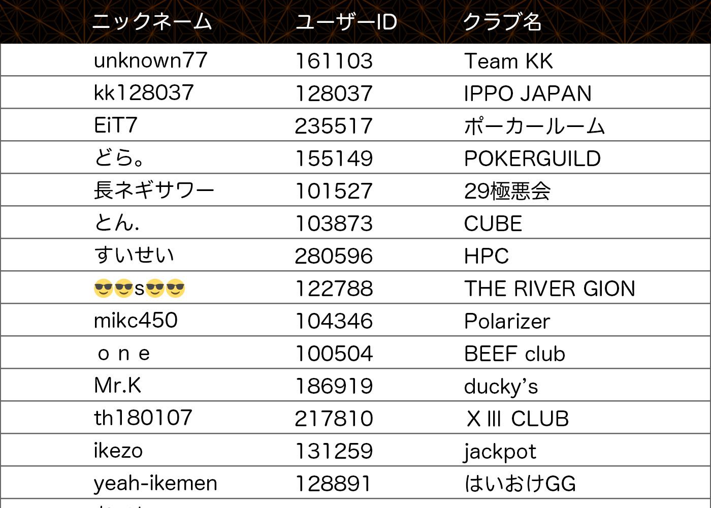 KKPoker史上初のクラブ柱決戦選抜者リスト大公開!